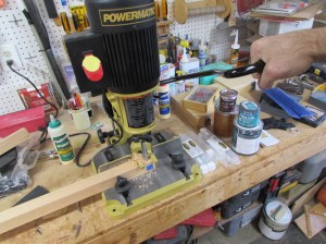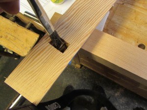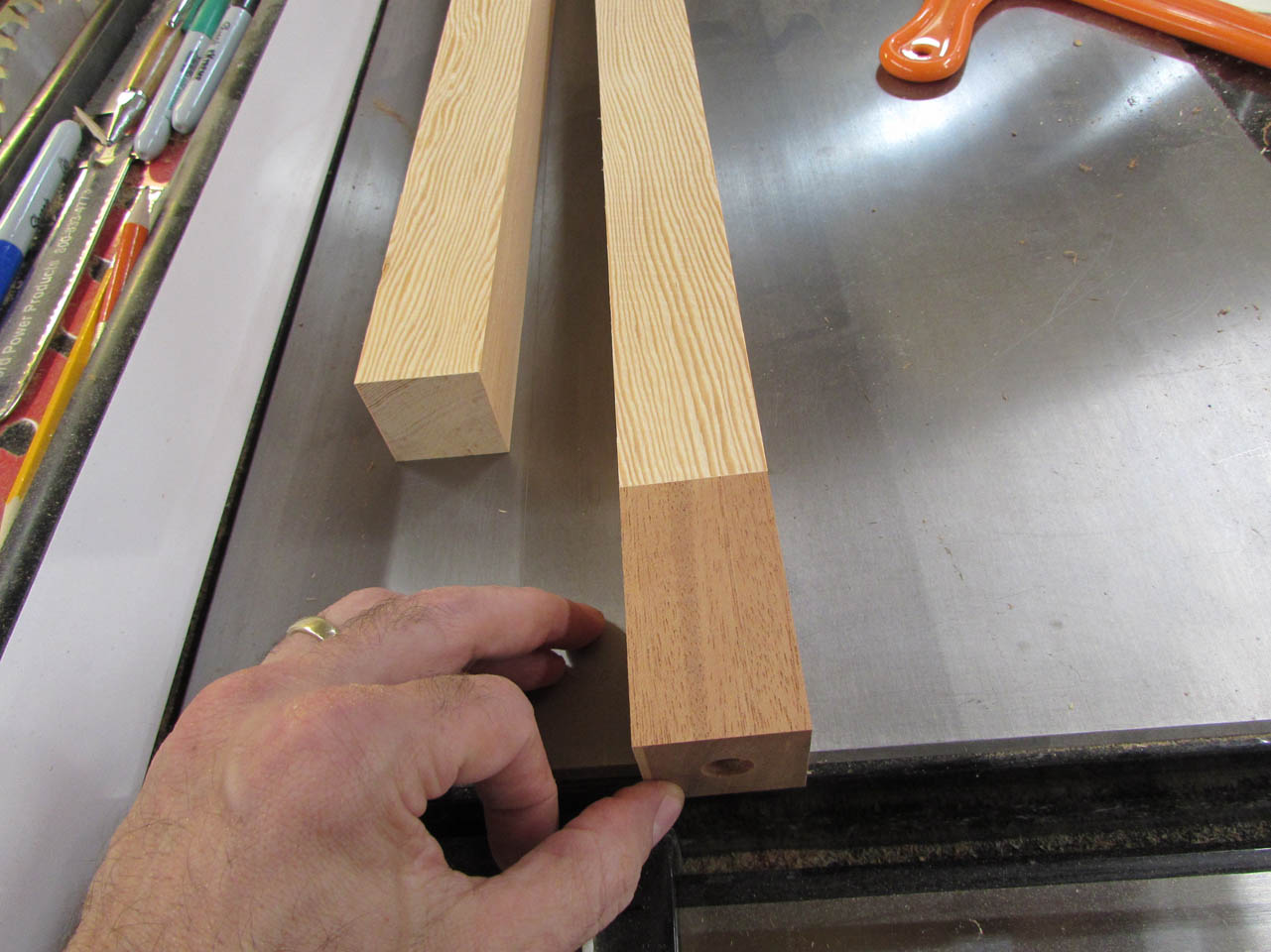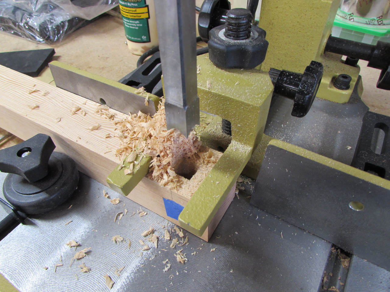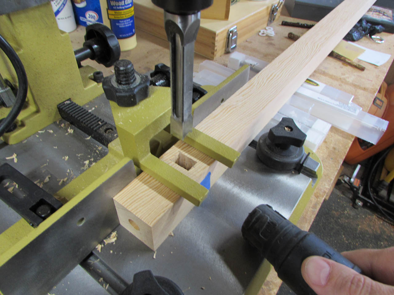 I put a 1/2″ square chisel into my hollow chisel mortiser and started drilling square holes.