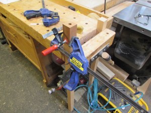 After the successful test fit, I applied a big clamp to the top and bottom as well and let it all dry.