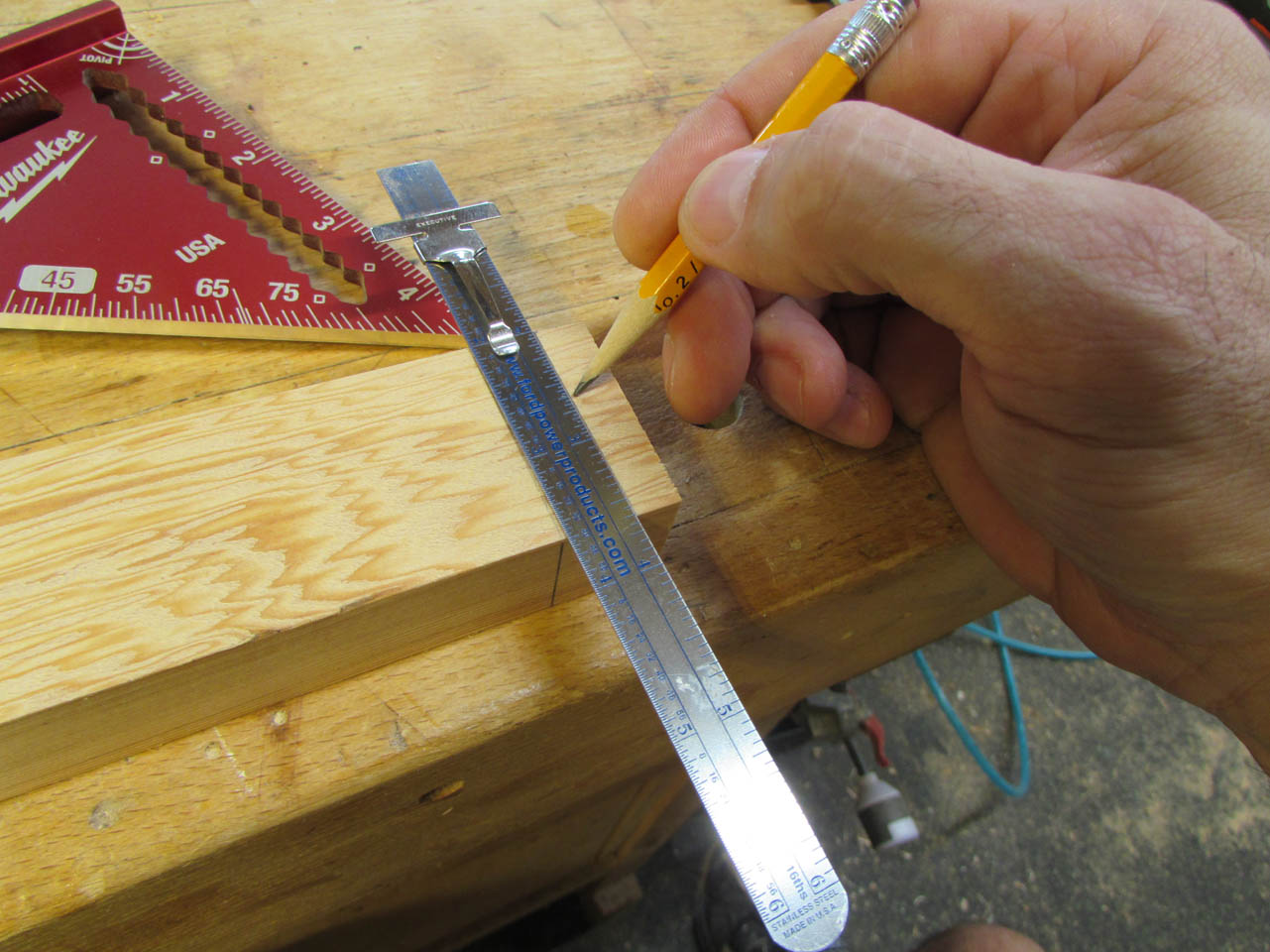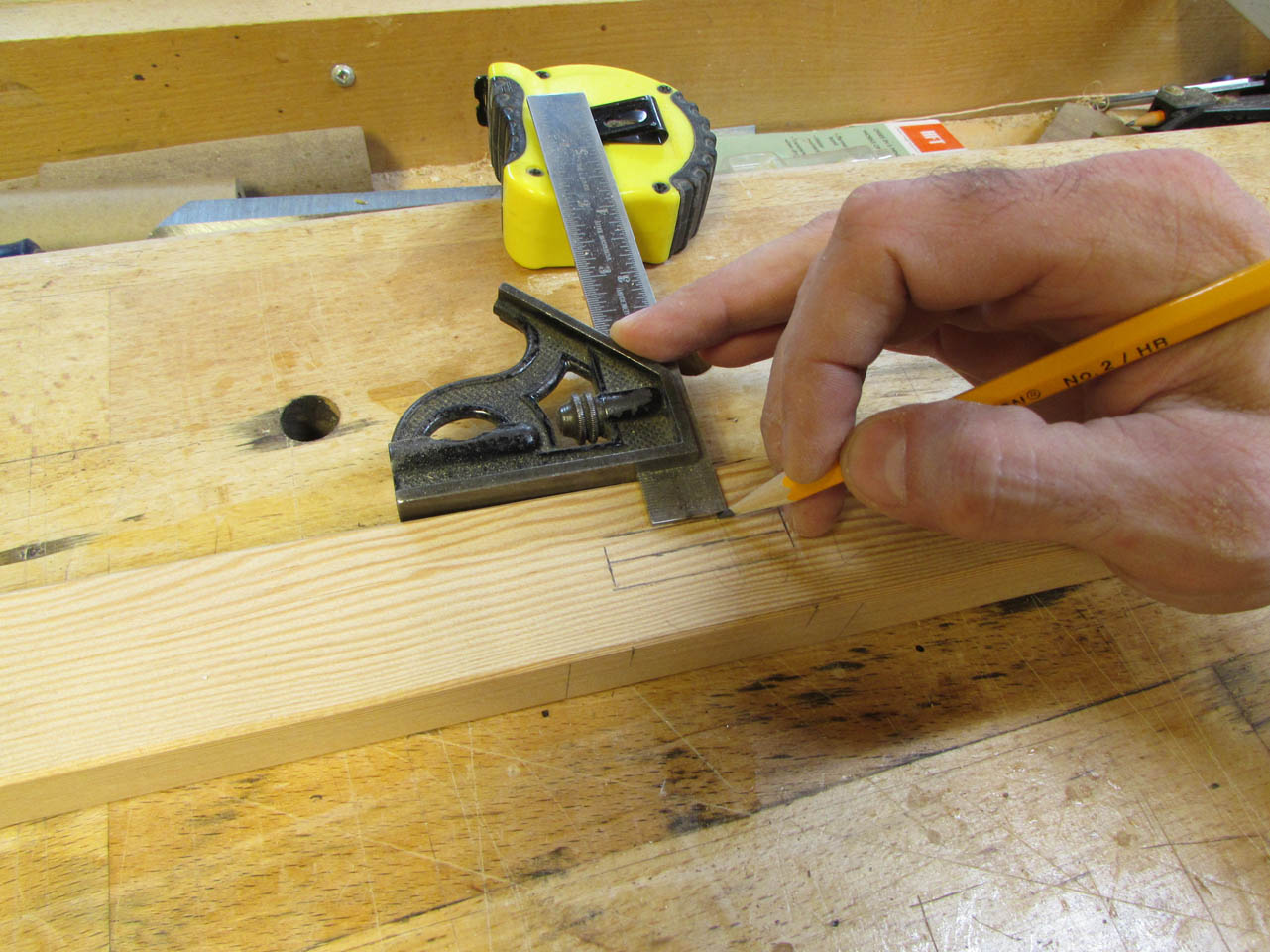 I used these marks to lay out the shoulder and the tenon that I would be cutting on each horizontal bar.