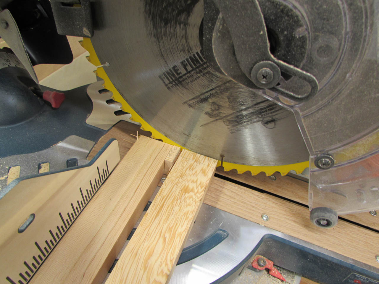 I cut the ends to the exact angle of the shoulder, then set my table saw blade to 1/2″ high and cut the front and back shoulder on each end.