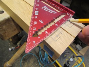 I cut two, 1″ wide pieces from my remaining Douglas fir, then held them in place and marked the inside of the posts.