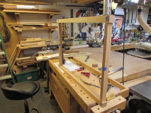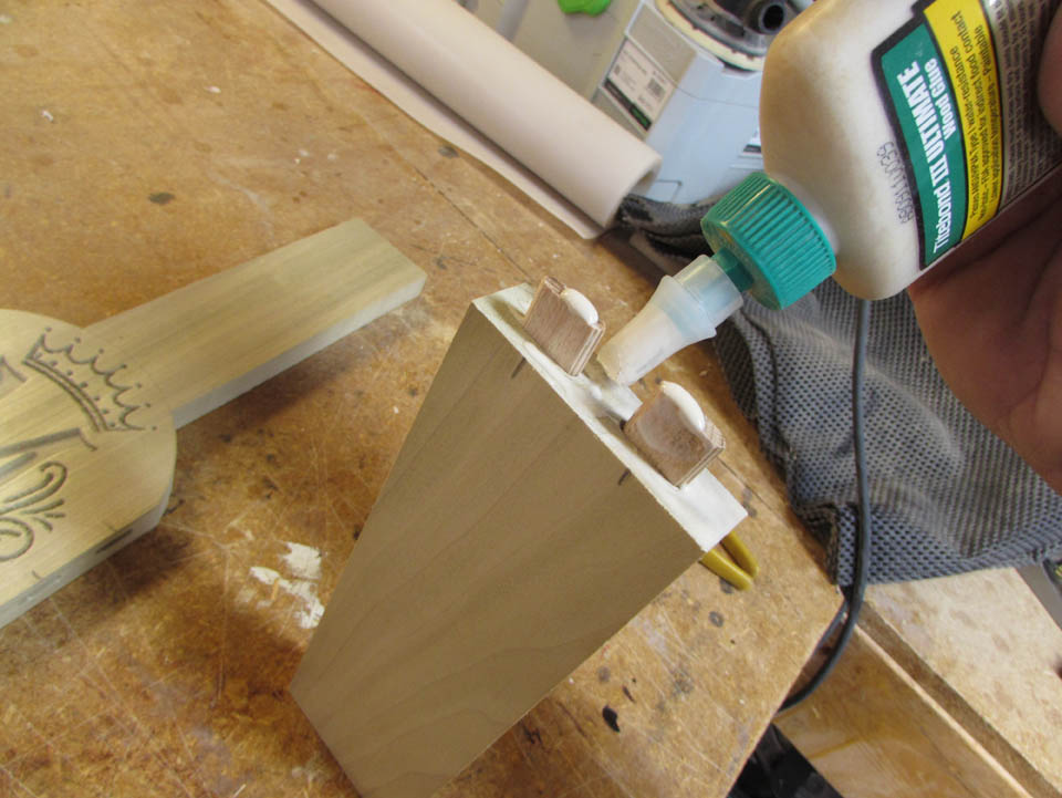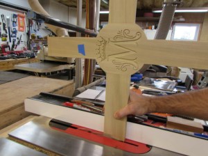 The arms need to be attached to the vertical cross piece that I carved and cut down last week.