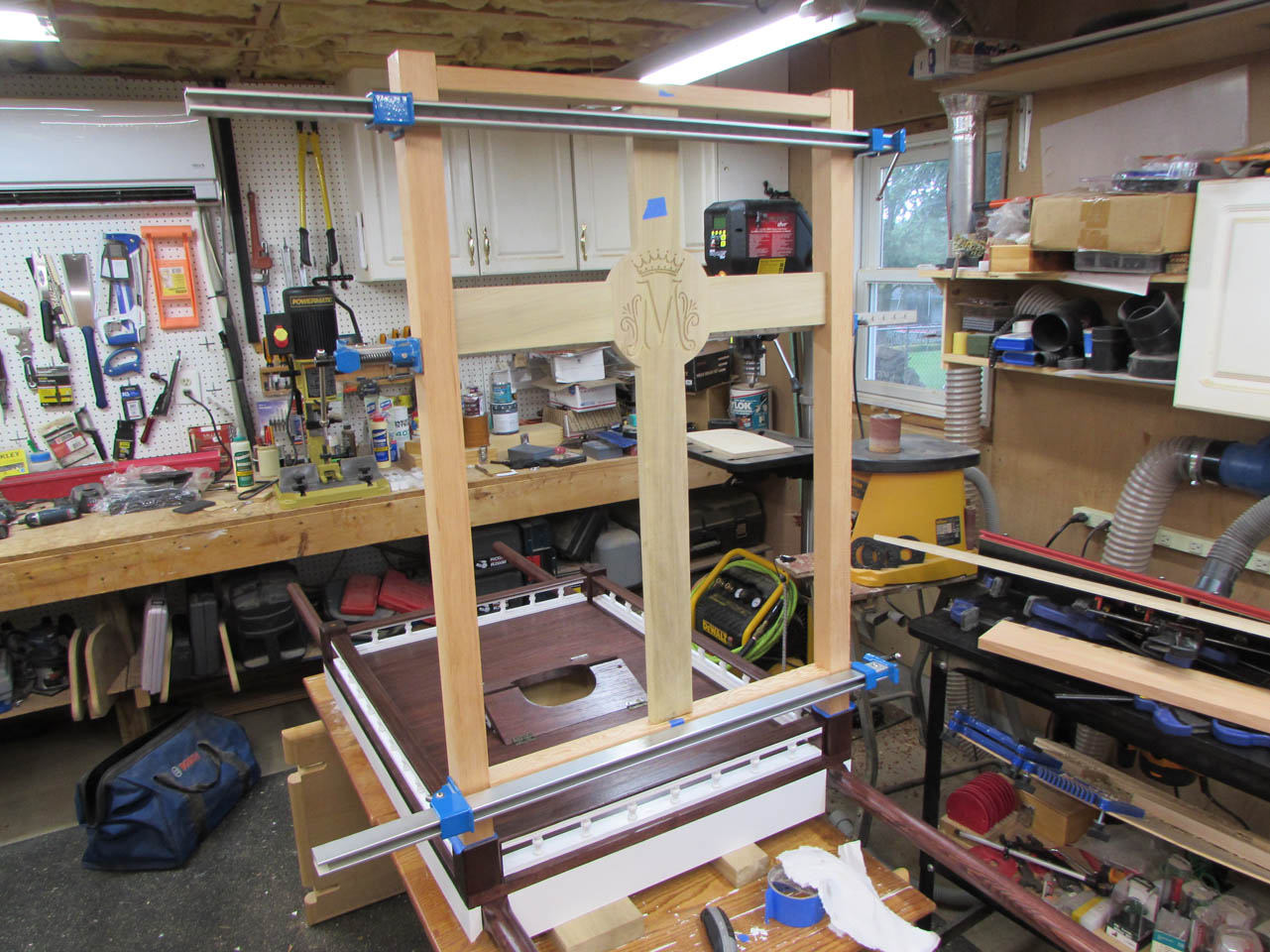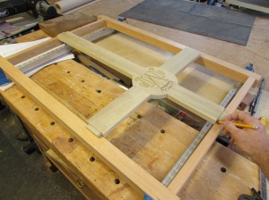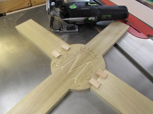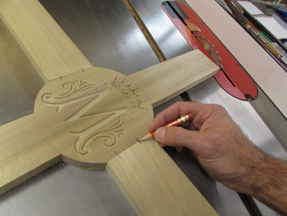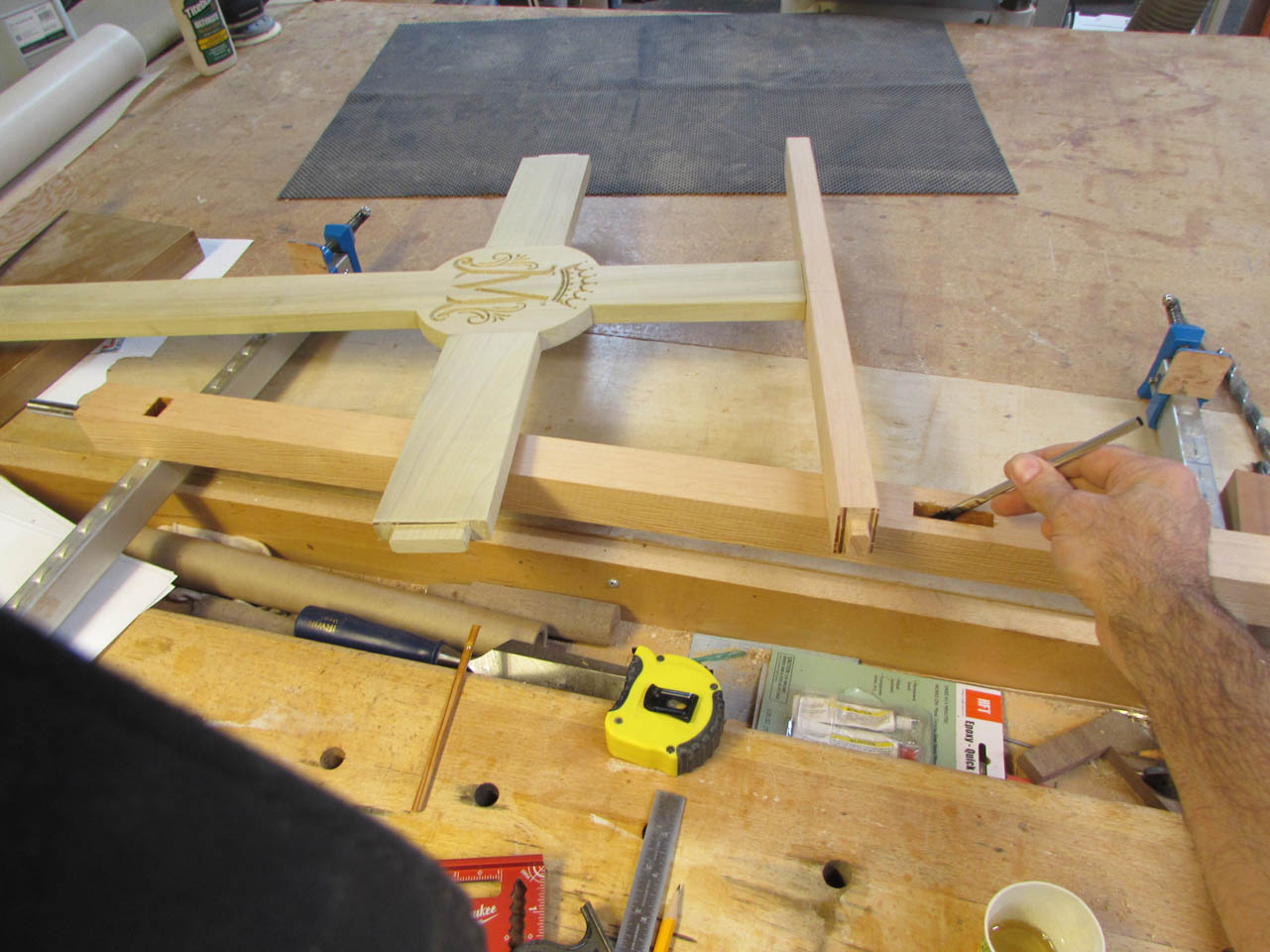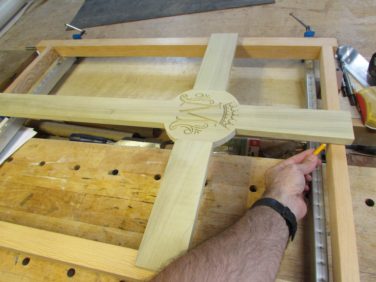 With the cross complete, I centered it up on the back frame and marked the location on the frame.