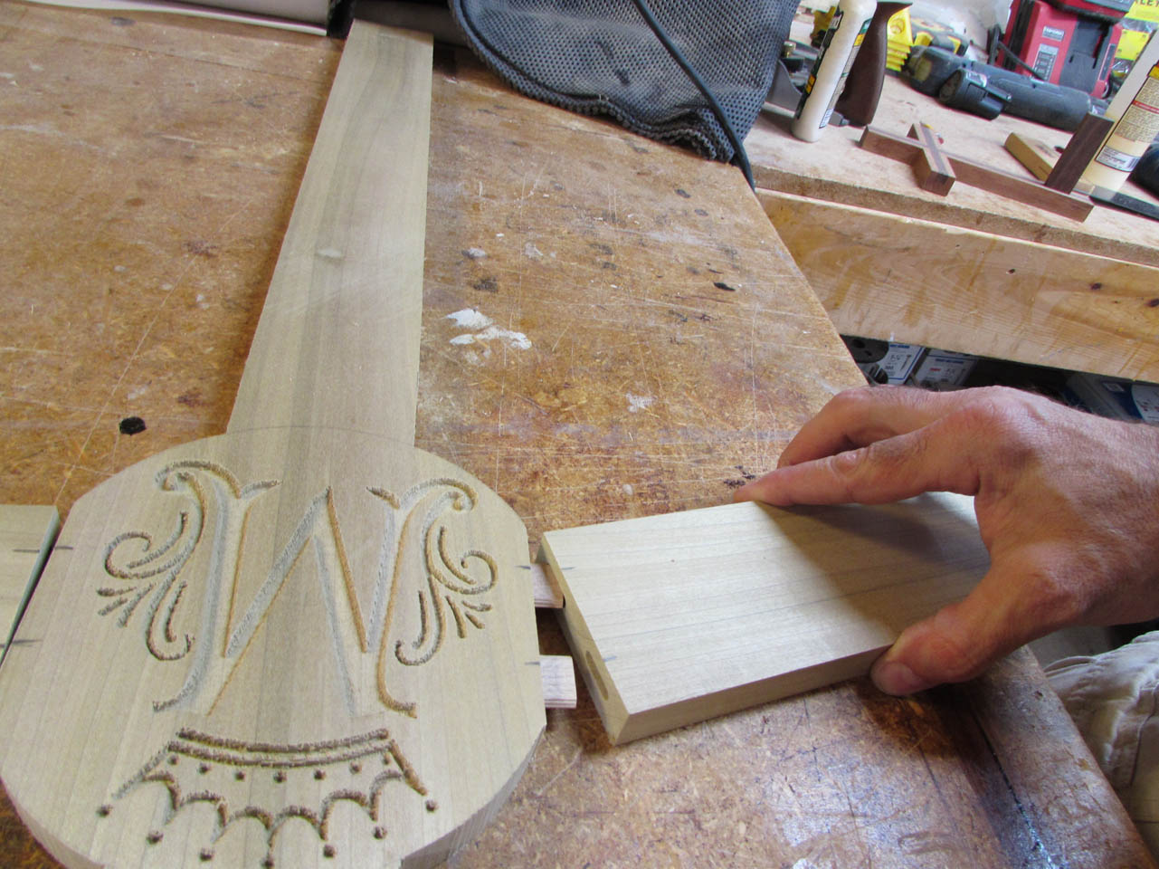 A quick test showed that they were a bit tight so I sanded the shoulder of the tenon until I had a good press fit.
