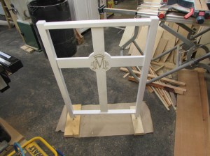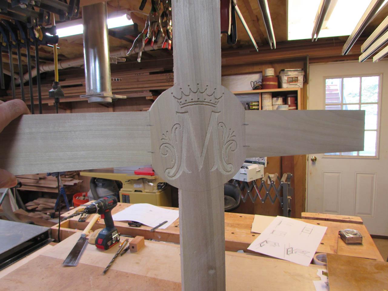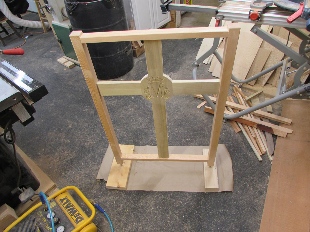 I am very happy with the frame. It worked almost perfectly. I will apply a second coat tomorrow, then apply paint to the Marian symbol. The only other thing left are the tiny crosses that mount on the front corners.