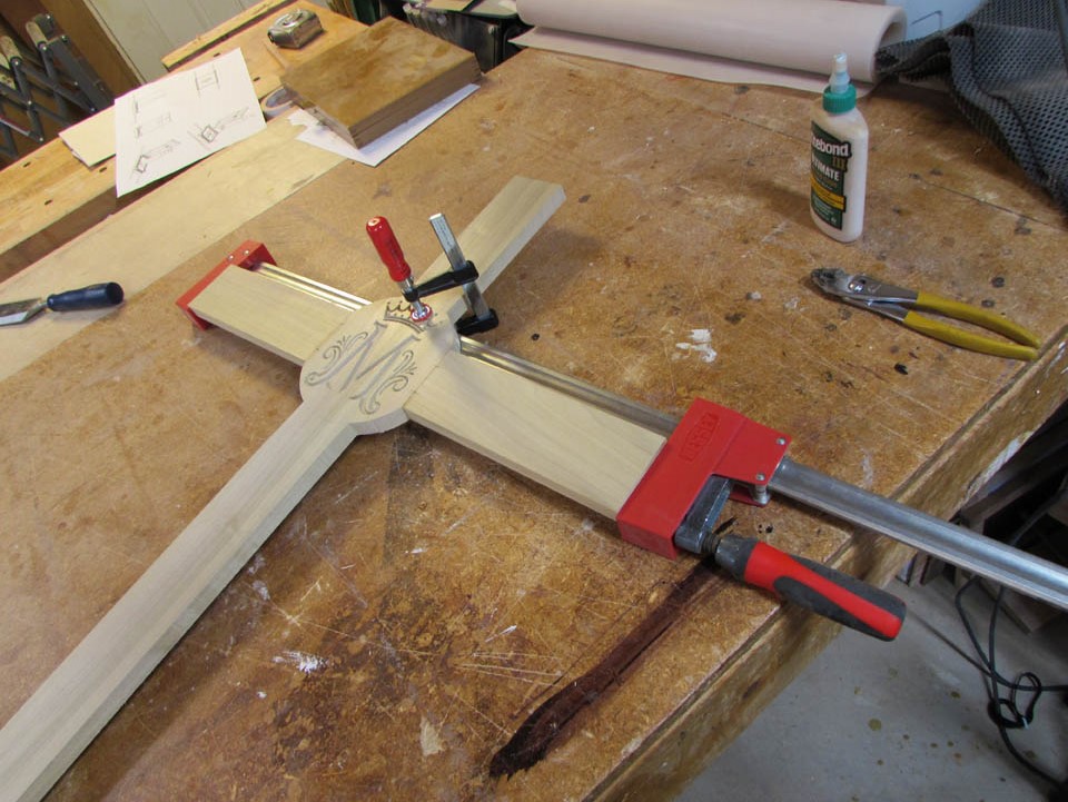 Then I attached the cross to one side and quickly attached the other side and clamped it all up.