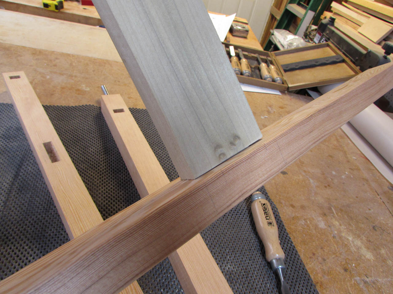 Next, I filled the top and bottom mortises and attached those rails to the cross.