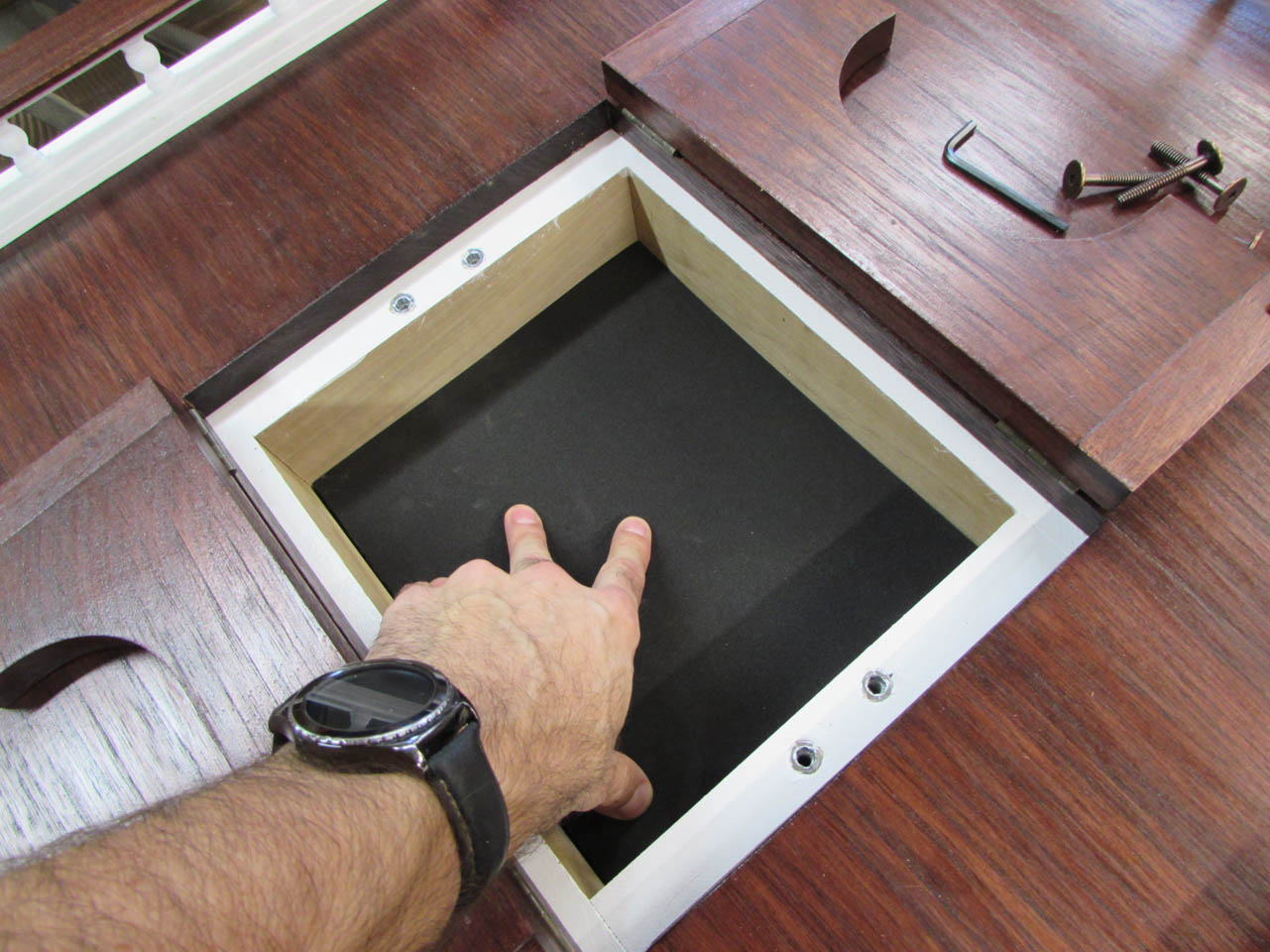 This gives me a very subtle location to store my wrench for tightening the bolts on the base socket.