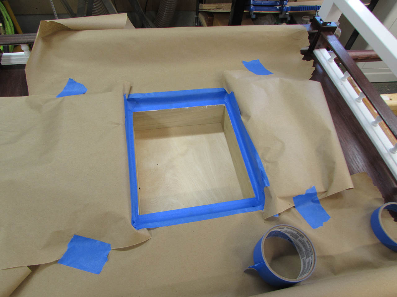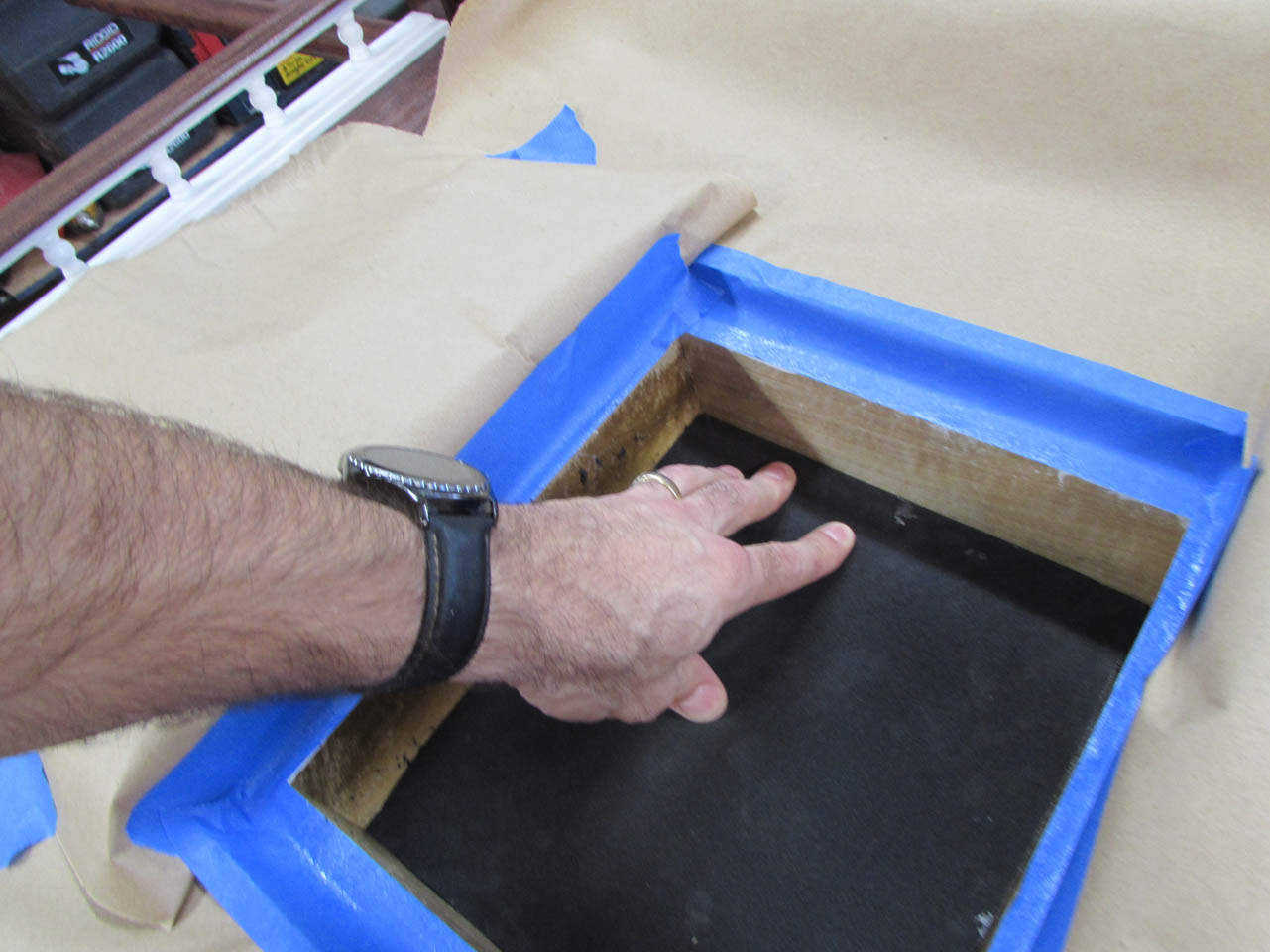 After testing the fit, I mask off the entire area.