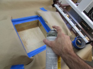 The spray glue, that I have for foam, wants to go everywhere and it is very sticky. It is better to be safe and mask off everything.