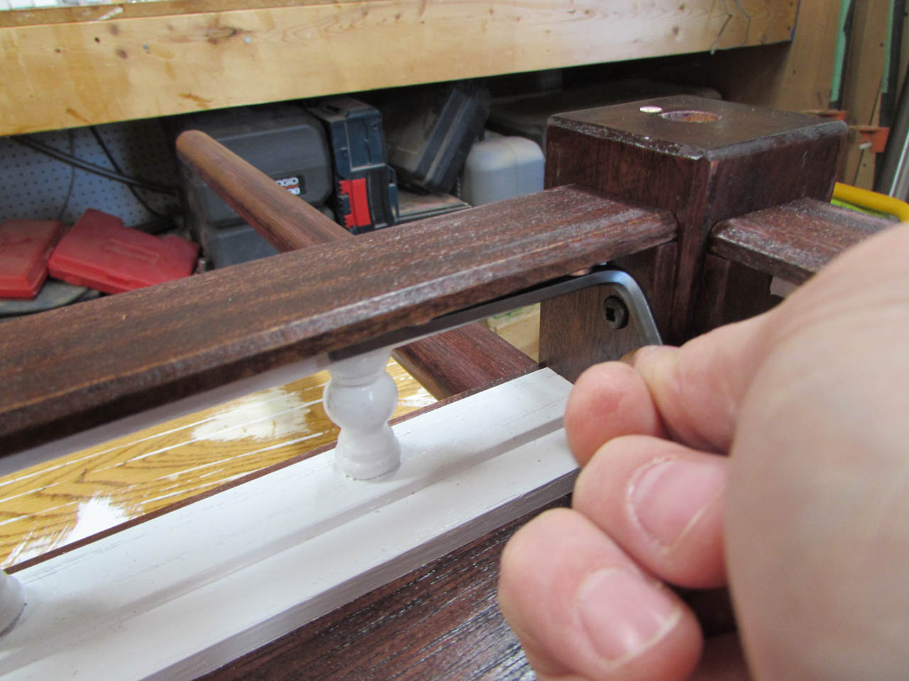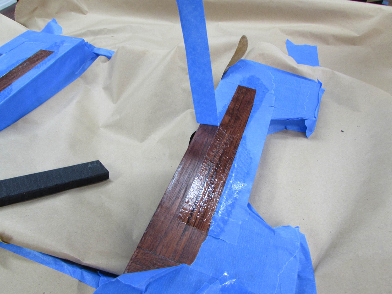 After they had dried, I test-fit them in the front corners then pulled them back out to apply stain.
