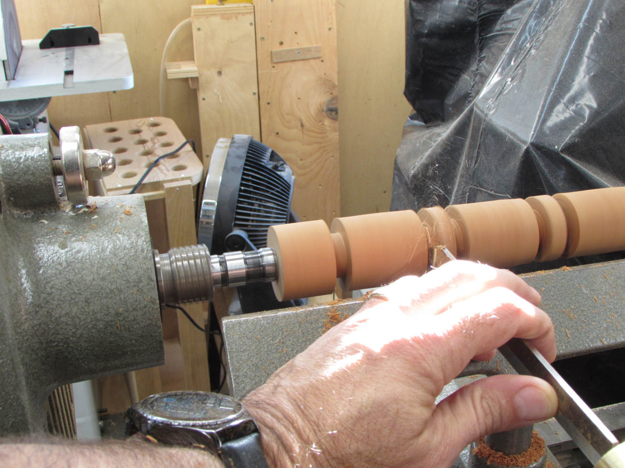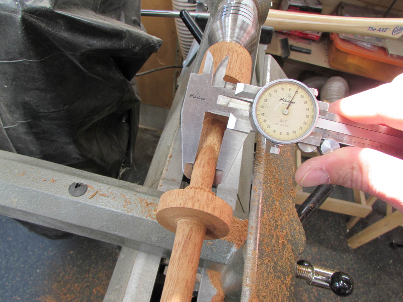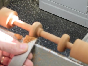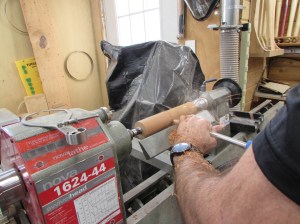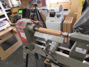 I set the blank into the lathe and start roughing it out.