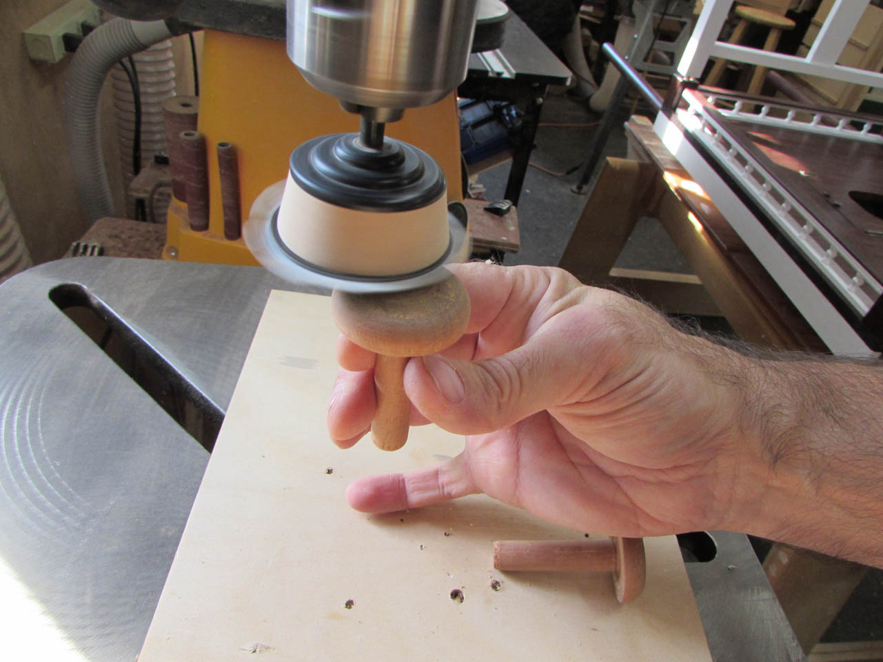 This step saves me a lot of time on the lathe, and avoids a bit of mess roughing the spindle down to a round shape.