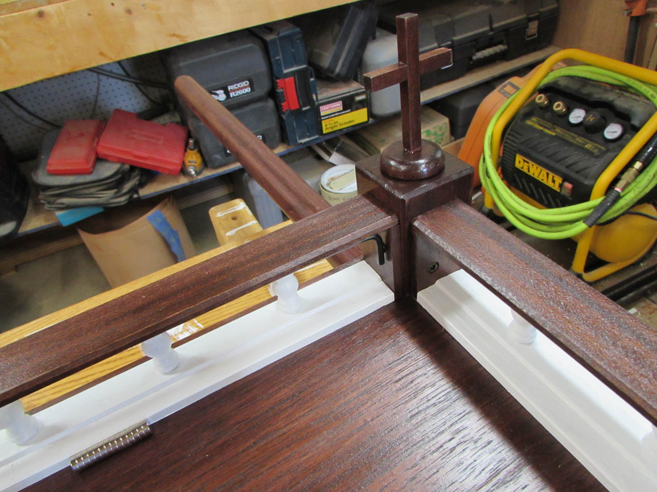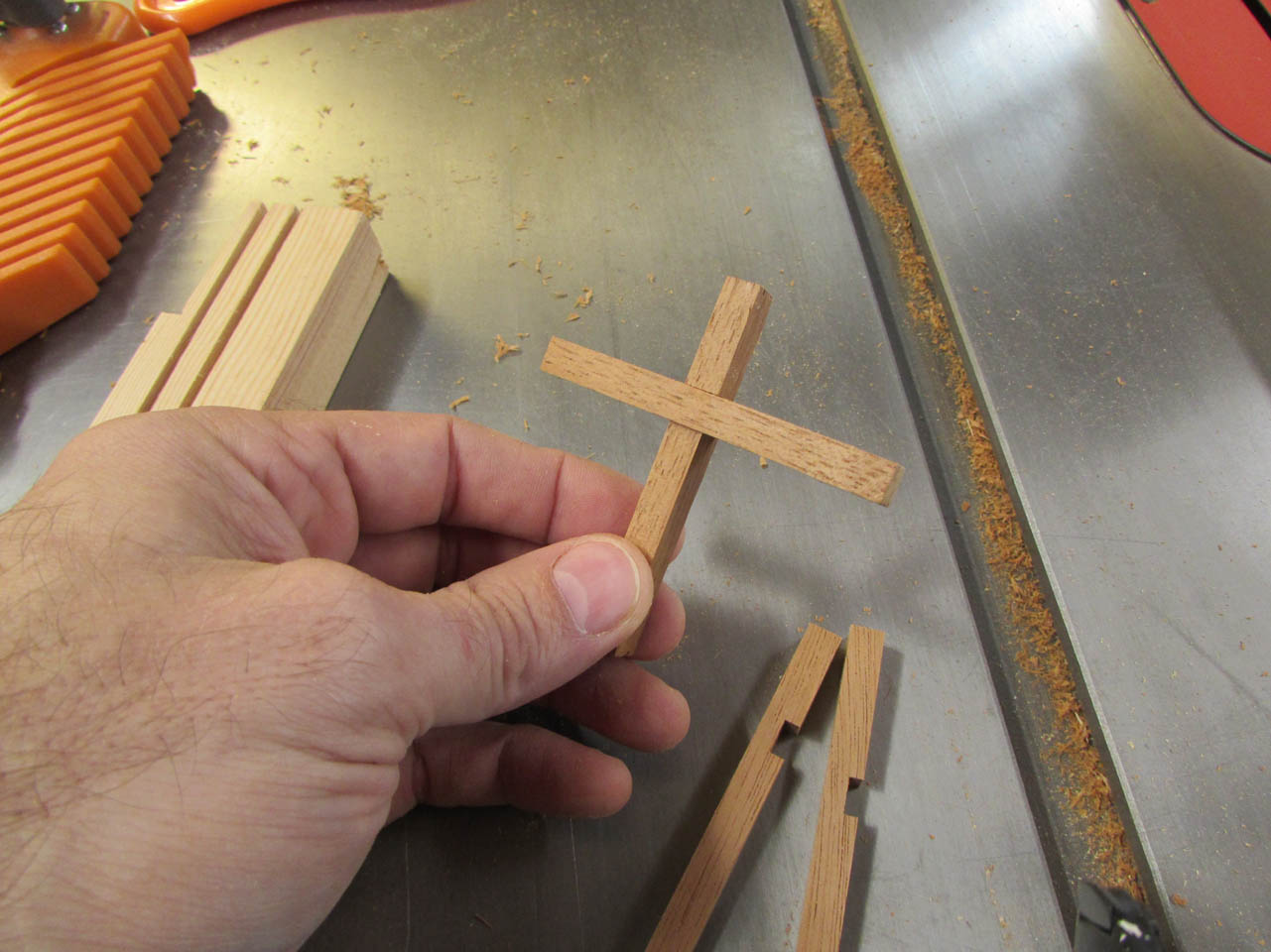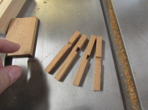 To make the crosses, I grabbed two small pieces of sapele that were left over from cutting the ends of the rails.