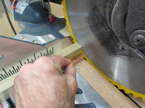 Using a sacrificial block against the gap in the fence of my miter saw, I safely cut down the arms.