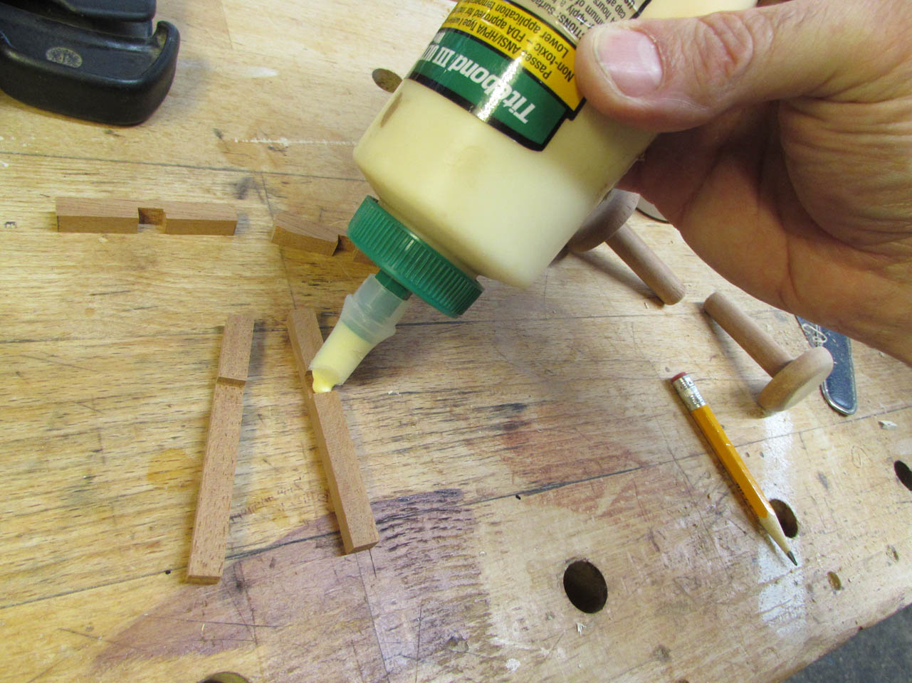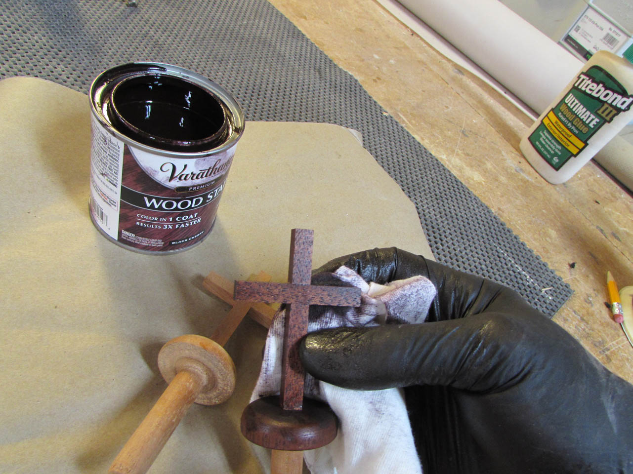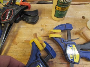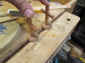 A drop of glue and a clamp, and the crosses are left to dry.