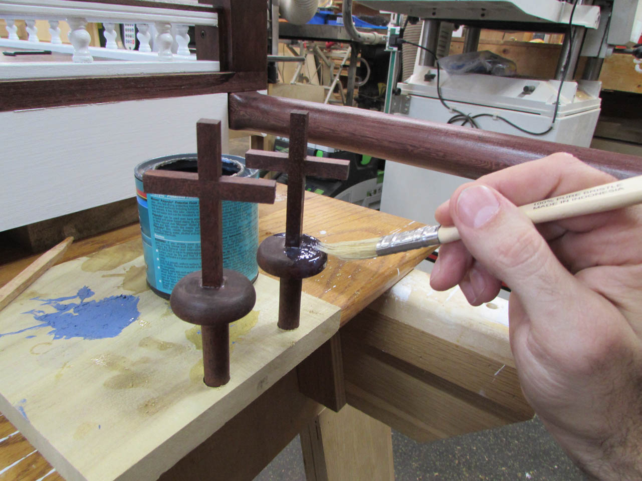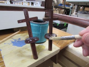 I mixed up some quick-setting 2-part epoxy and put it in the holes, then pressed the crosses in place and made sure they were straight.