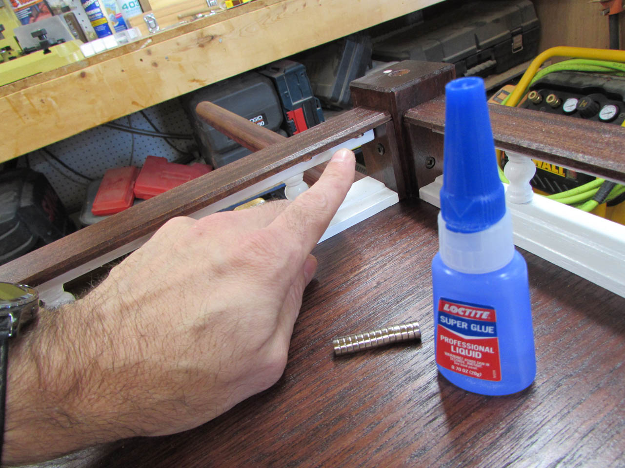 I decided to add one more thing since I had my magnets out. I used CA glue to attach two small magnets to the bottom of the front rail.