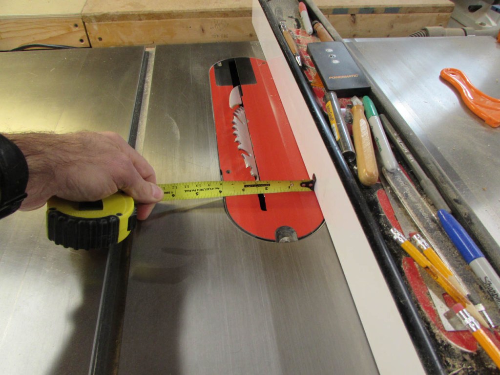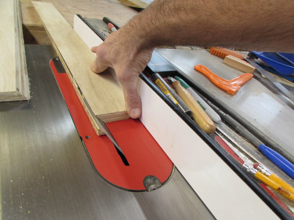 Once cut, I set the table saw blade to 45° and the fence to 2-5/16″