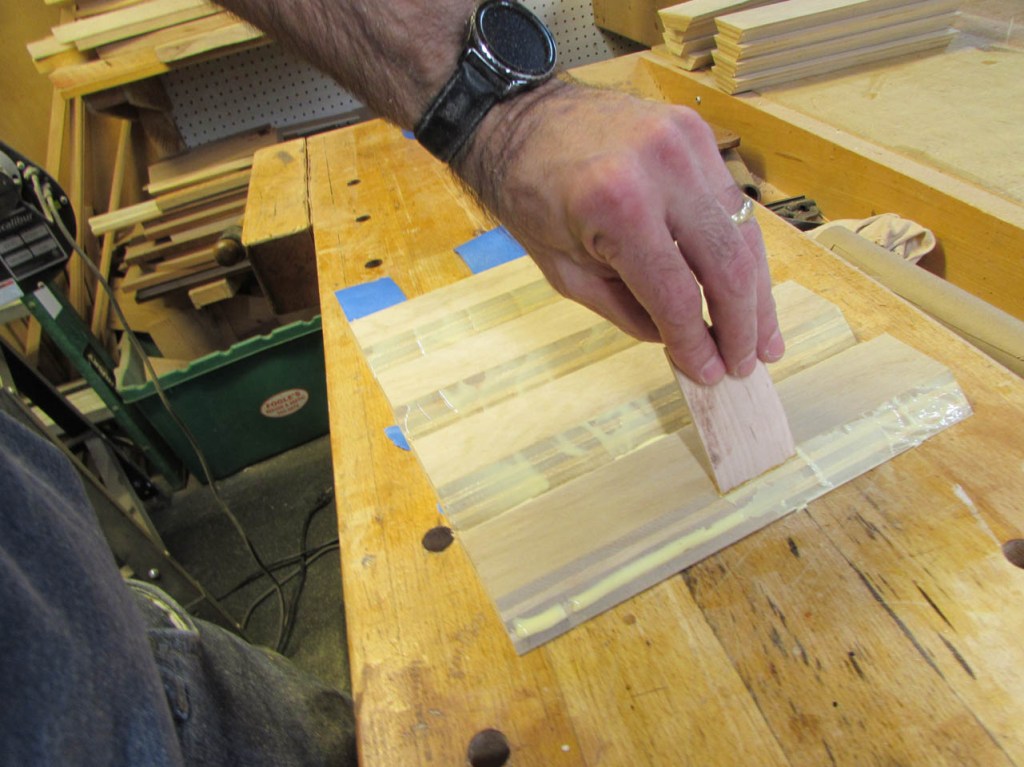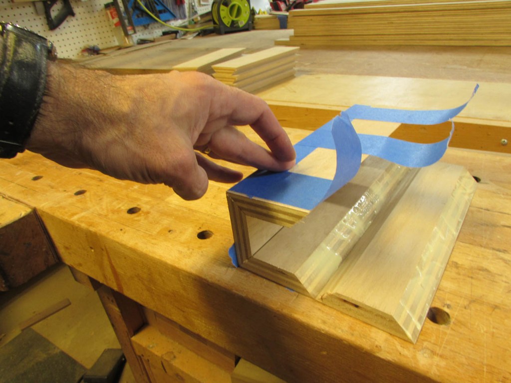 The tape holds pretty well, but I added a couple of clamps to the ends as well, until the glue had set. This will help avoid any gaps.