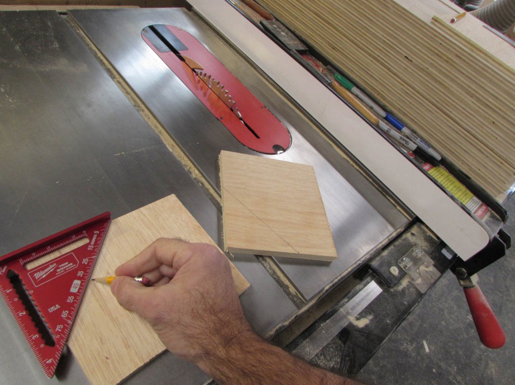 To give the legs more attachment points, I am making some gussets from the scrap 1/2″ plywood.