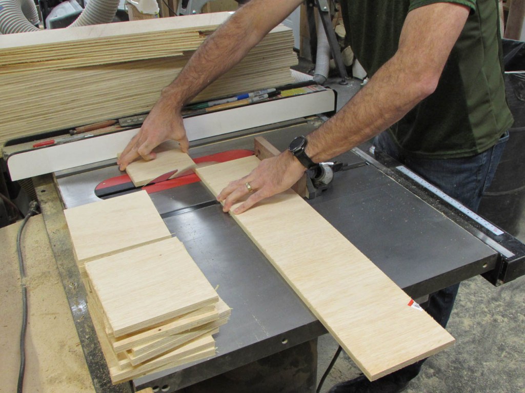 By flipping the plywood sheet over and cutting it again, I can continue cutting sides until I finished the sheet.