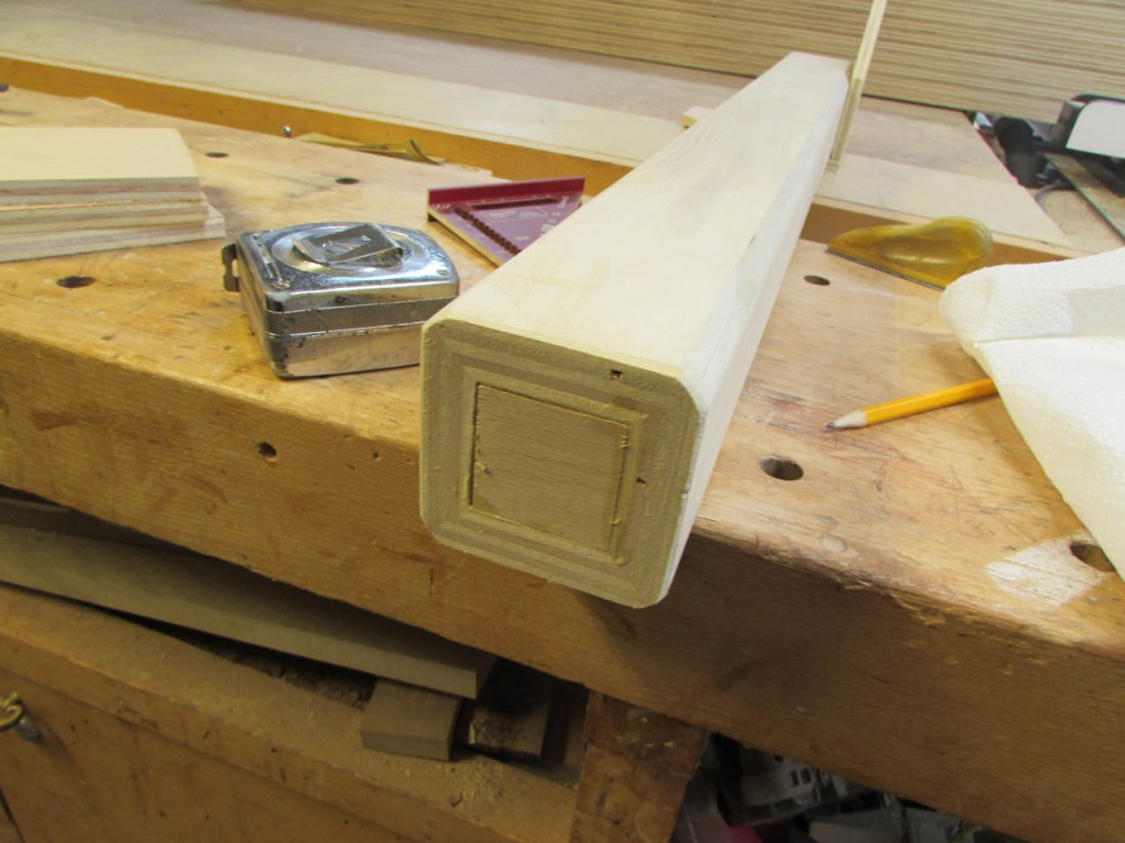 I want to add a square plug, cut from my scraps. This will help prevent the leg from sinking into the pile of the carpet by presenting a larger flat area to the carpet.