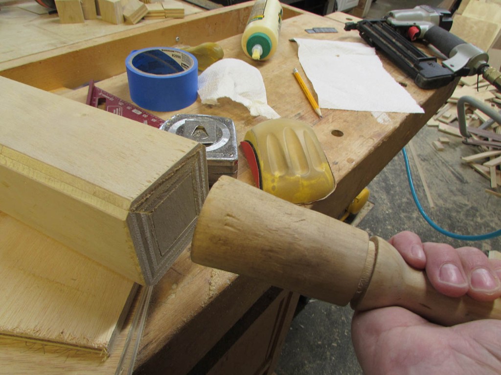 For attachment, I am using wood glue and a few brads to hold everything in place while the glue dries.