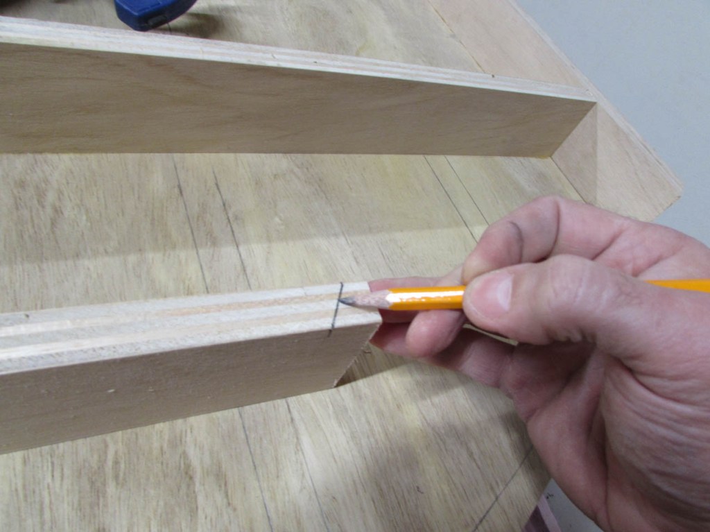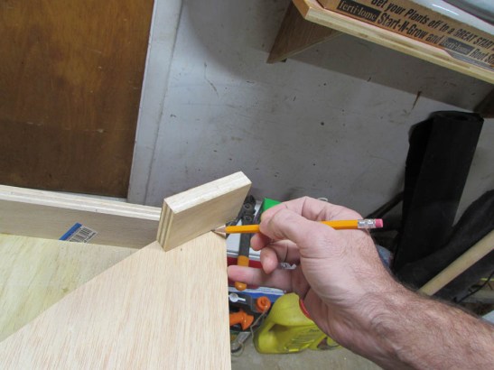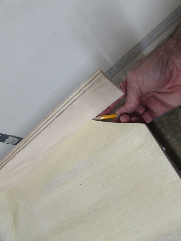 I decided to lay out the structure with a pencil first. I used a scrap of plywood to mark where to start the long edge.
