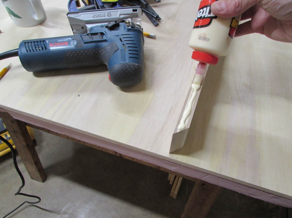 I applied glue and clamped it along the edge of the plywood, leaving 3/4″ at the end to attach the curved piece.