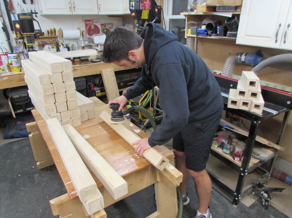 Chris came over to help so I put him in charge of sanding down the very large pile of legs.