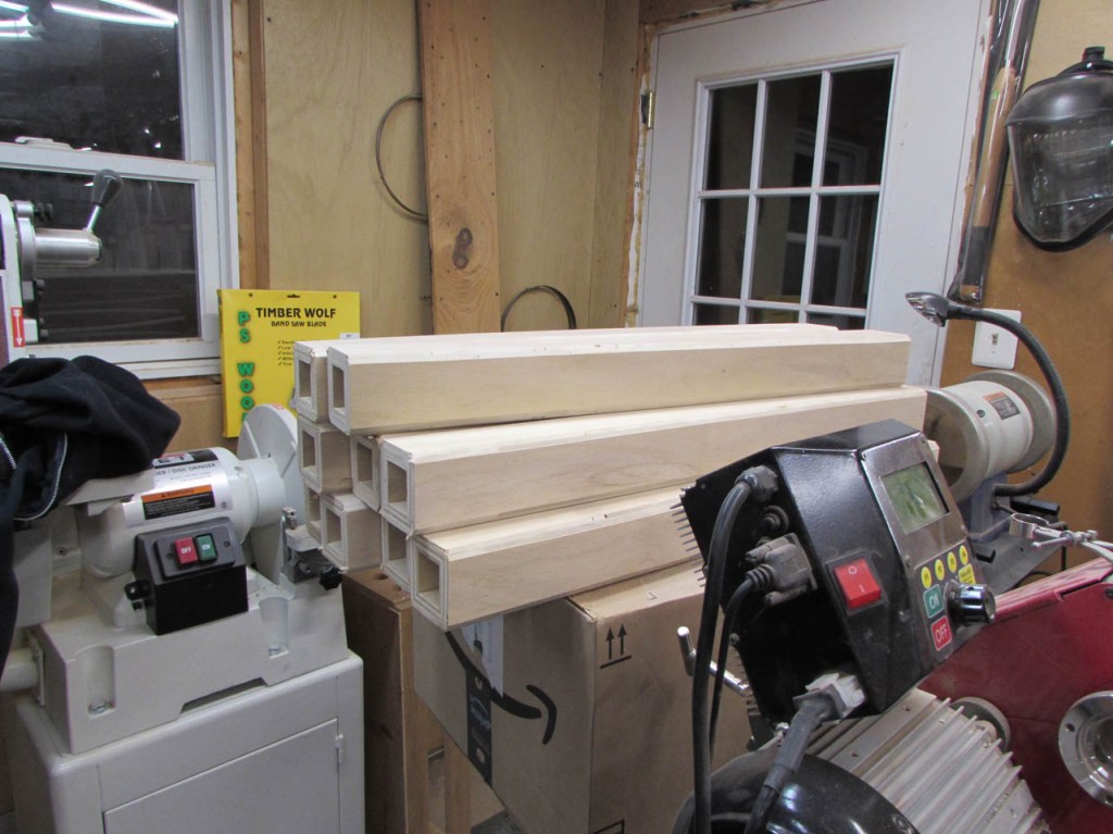The idea behind using these as the structure comes from the micro-lam beams that are now used as structural support in houses. The wood is kiln dried to a much higher level than standard 2x4s. Also, the grain direction is alternated with each layer of the plywood preventing expansion and contraction of the wood. The glue lamination of each layer adds a lot of strength. If I construct the structure correctly and glue everything together, the tops should be flat and very stable.
