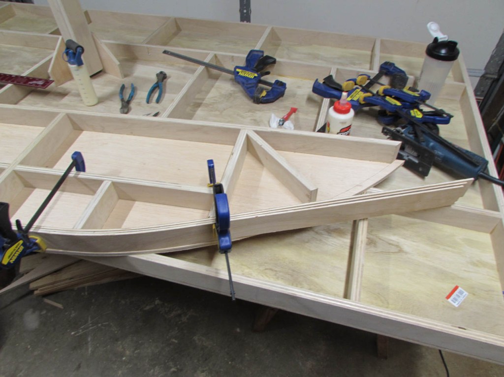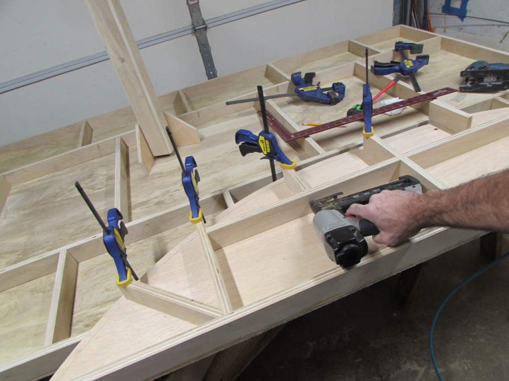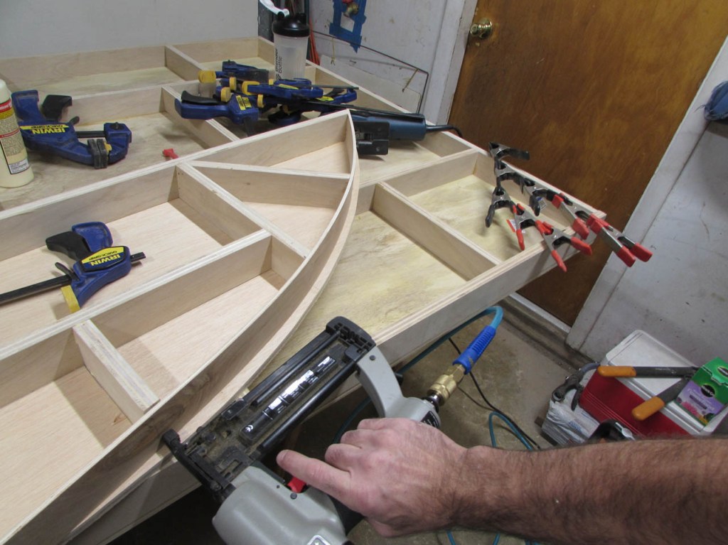 I applied glue to each rib and clamped it in place, then attached the rib with brad nails.