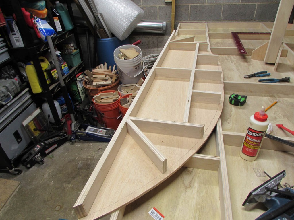 I screwed down all of the middle ribs and attached the shorter side pieces with brad nails, to the sides of the ribs.
