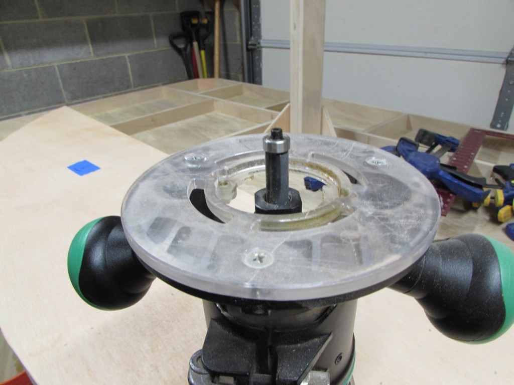 My curve wasn’t perfect, I needed to add more ribs, but it was only slightly off so I set up my flush-trim bit in my router, and ran it along the edge of the 1/2″ plywood top.