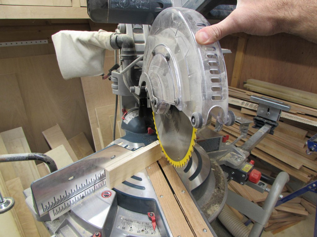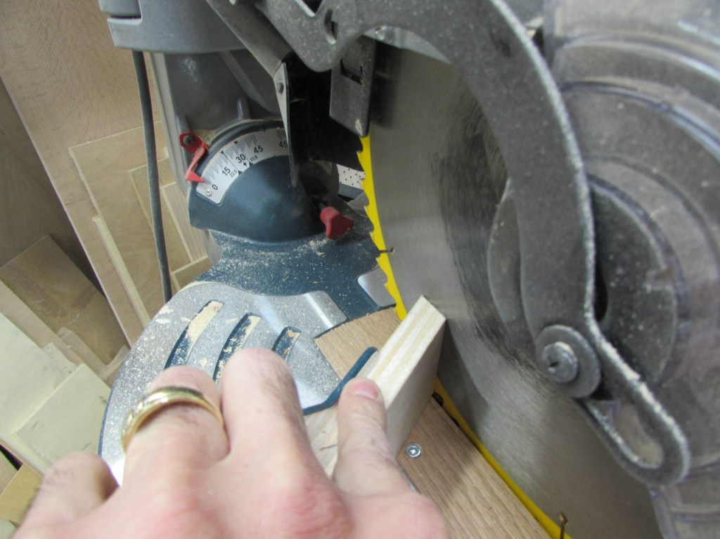 I carefully adjusted the miter saw to align with my mark and cut it.