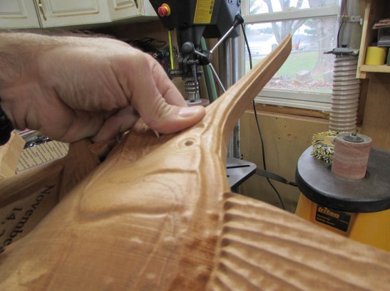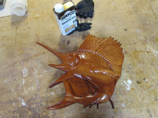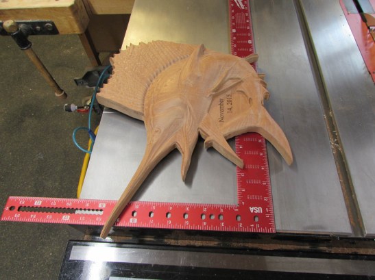The carving tool does a fairly good job on half of the fish, but it raises the grain on the other half.