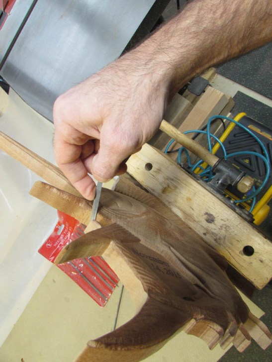 I now have to get down into the tight spots that the electric sanders cannot reach. I am using jeweler’s files for the most part, and some small pieces of sand paper.
