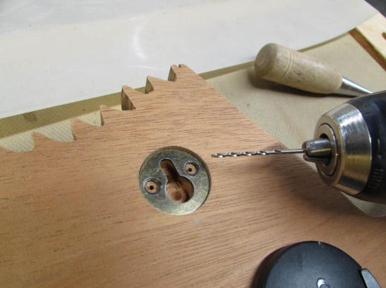 For the slot, behind the keyhole, I bore two 1/4″ deep holes with a 3/8″ bit.