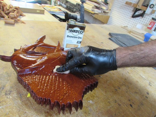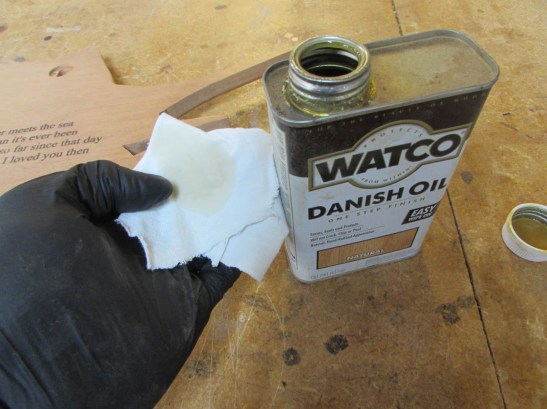 Now it is time for finish. Since this will hang on a wall and not receive a lot of abuse, I am going to use Danish oil and give it a couple of coats.
