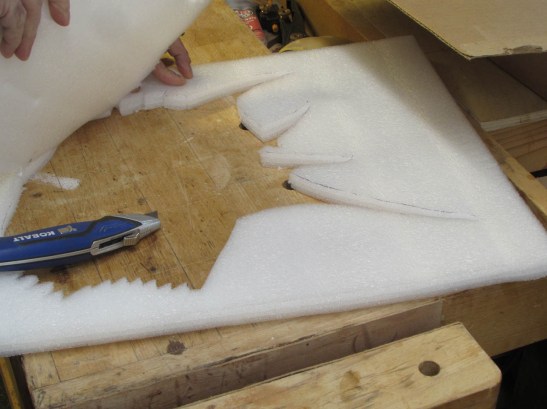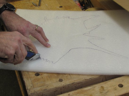 I traced the fish out on the foam with a ball point pen, then cut it out with a sharp utility knife.