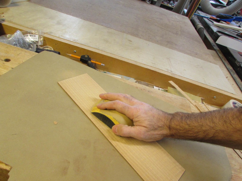 I did a little sanding to smooth down the veneer. The removal of the blocks left it a bit fuzzy…