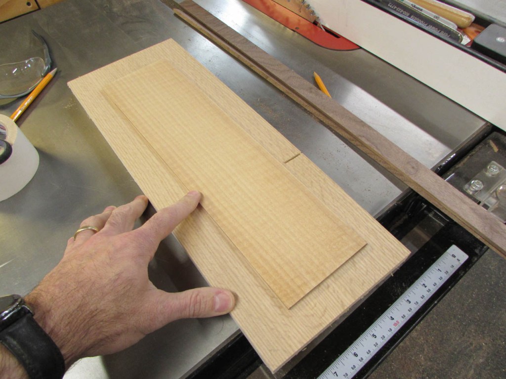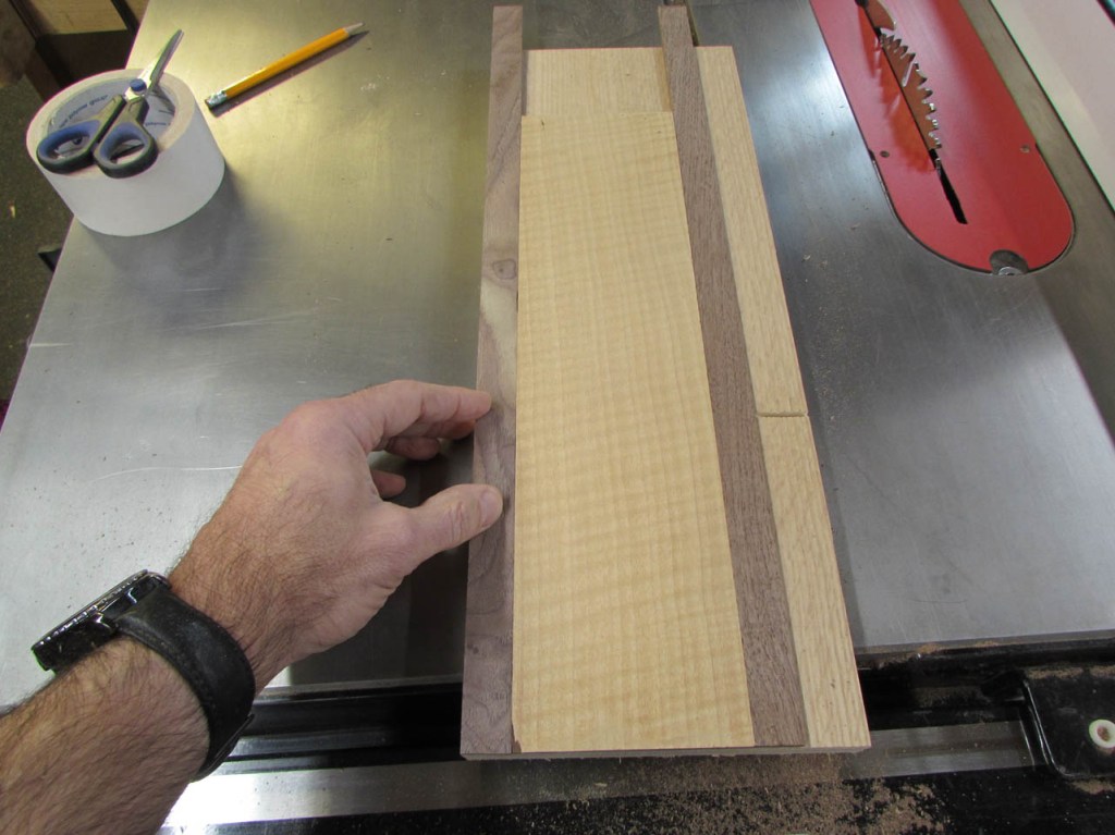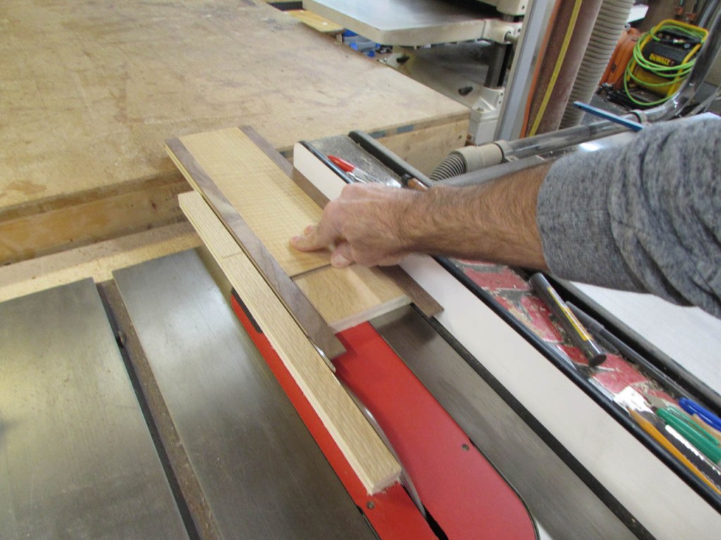 Then I used a push block to safely rip two strips of walnut on the table saw.
