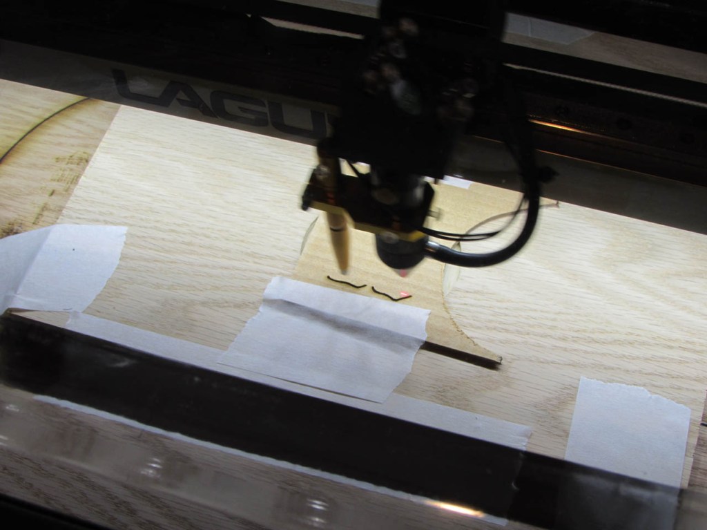 Since the scrap piece was taped to the top of the board, I need to re-align the focus of the laser at the new elevation. I have forgotten this a couple of times and had some very blurry results…