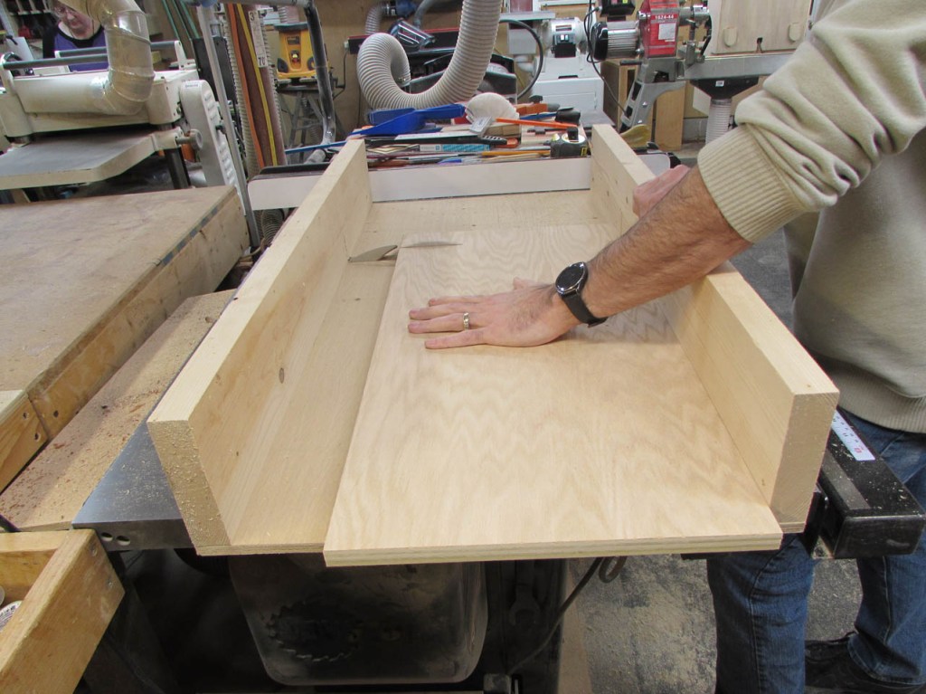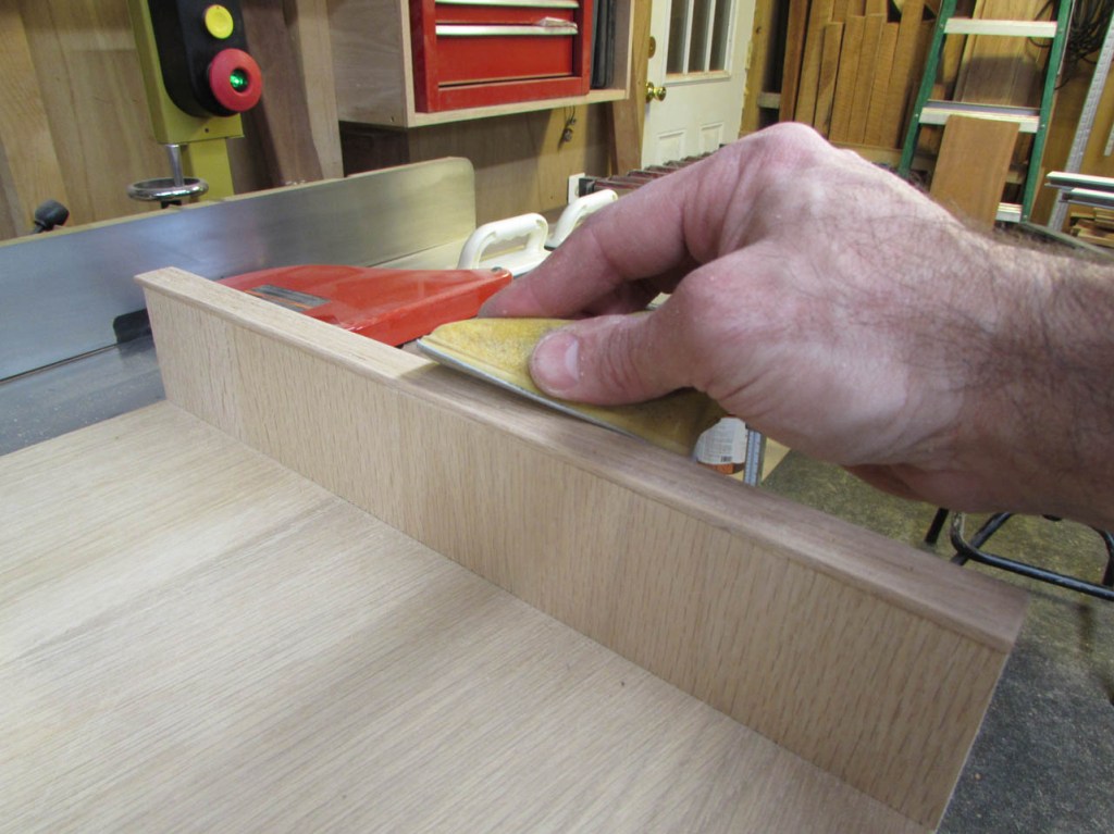I set up a 3/8″ round-over bit in the router table to ease the front and sides of the top.