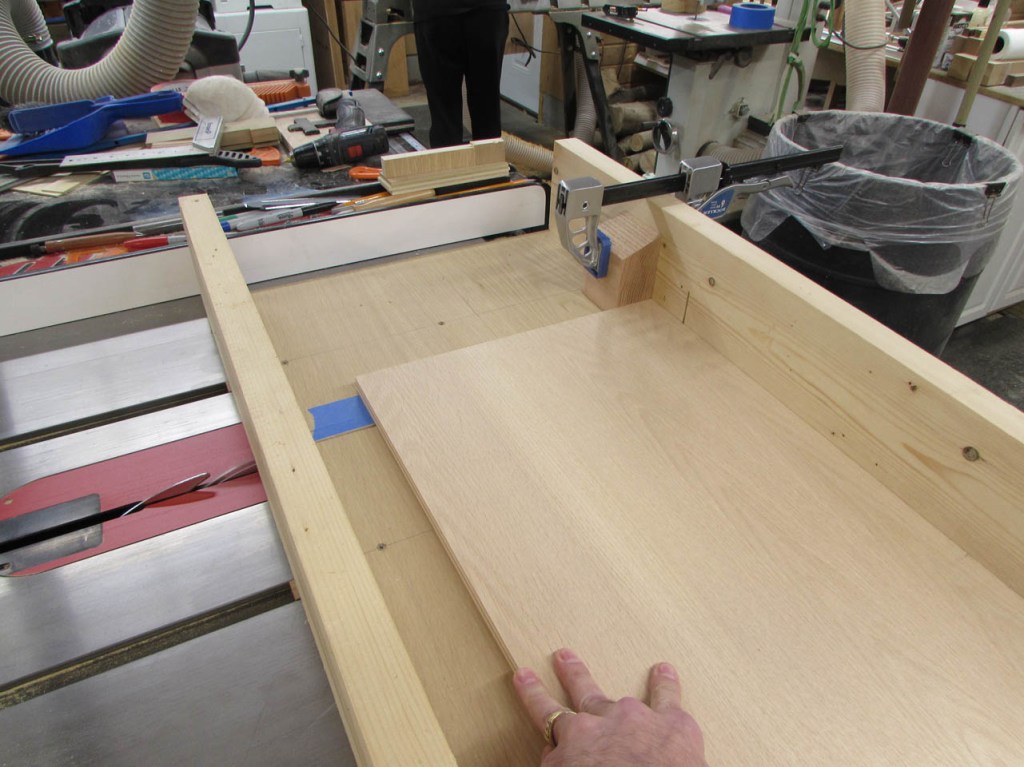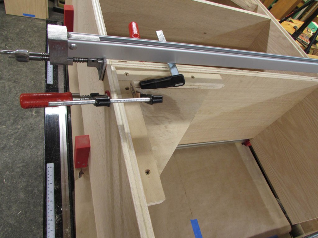 After attaching the opposite side, I clamped in some blocks to hold it all square then placed clamps along the outside to hold it all while it dried.
