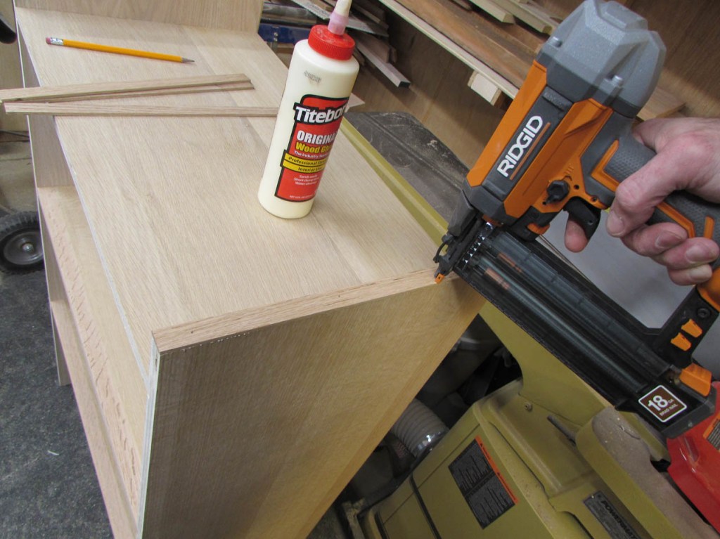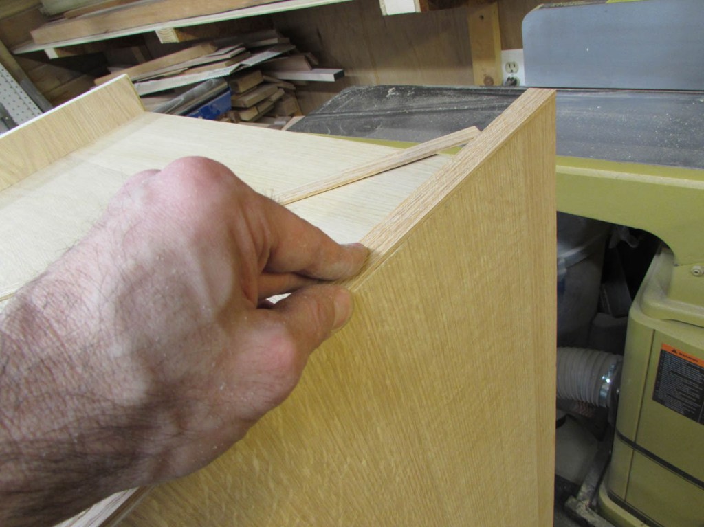 Of course, after the glue was set, I realized that I had not added the solid wood to the front of the shelves yet…