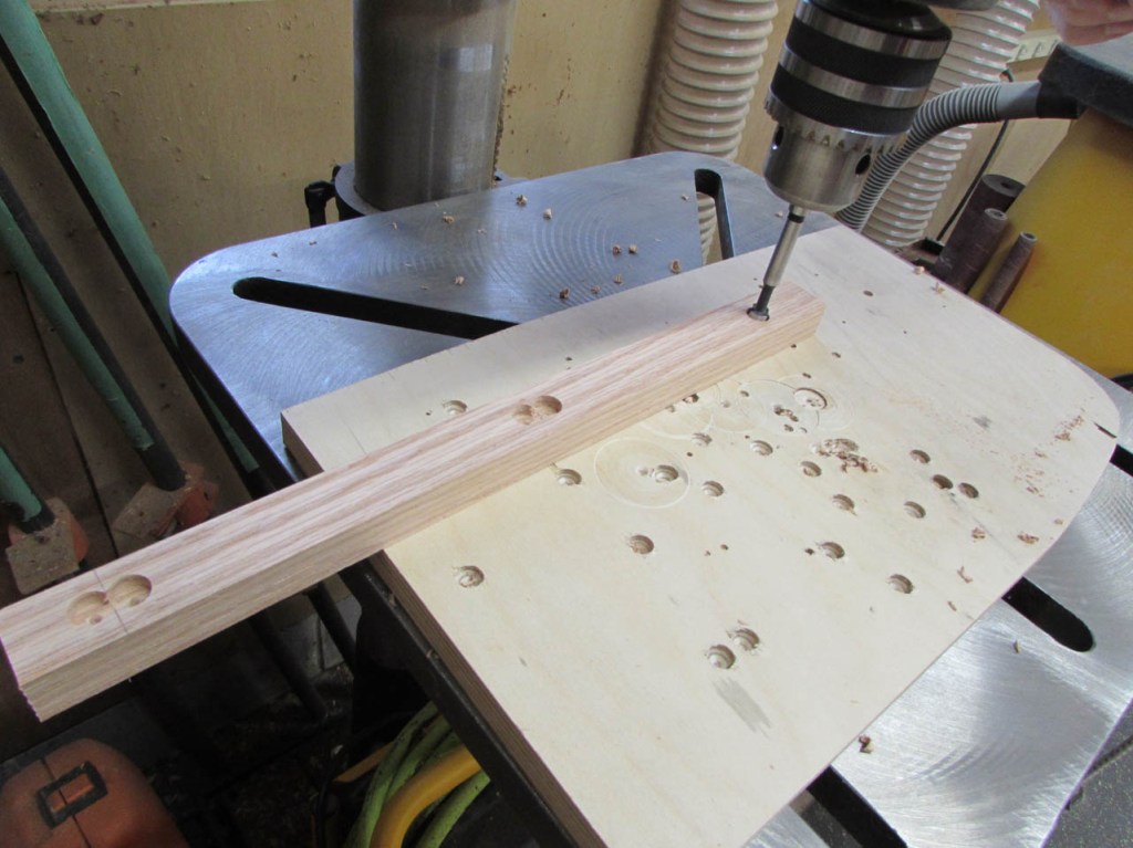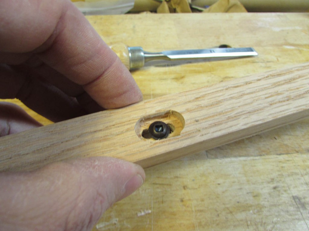 I used a 3/8″ forstner bit to create a counter-bore at one end, then I created an elongated counter-bore at the other two locations.