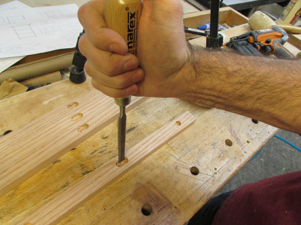 Once the clamps were removed, I can scrape away the squeeze-out with a chisel.
