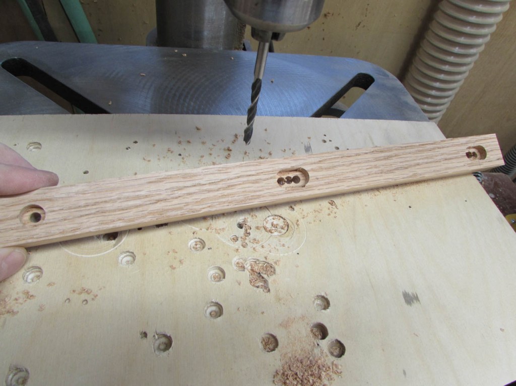Next, I used a 3/16″ bit to create a through-hole at the one and a slot at the others.